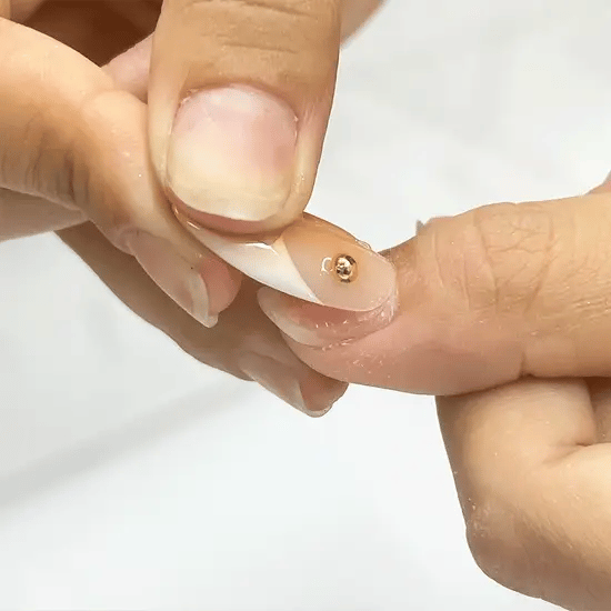 Soak your nails in warm soapy water for 10-15 minutes to loosen the adhesive. Gently lift from the sides using a cuticle stick. Never force or pull them off to avoid damaging your natural nails.